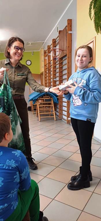 Kochani, reagując na Wasze zgłoszenia o bardzo przykrych spotkaniach z wilkami, zaprosiliśmy do naszej szkoły przedstawiciela Nadleśnictwa Olsztynek do przeprowadzenia zajęć uświadamiających. 15.11.2024 r. Pani Iwona Jóźwiak opowiedziała o zachowaniach dzikich zwierząt w środowisku naturalnym, jak również o tym, jak reagować, kiedy dojdzie do naszego spotkania np. z wilkiem. Następnie Pani prowadząca przeprowadziła mały konkurs, a zwycięzcom wręczyła upominki. Za pouczające wiadomości serdecznie dziękujemy; mamy nadzieję, że nie będzie potrzeby wykorzystywania wiedzy w praktyce.