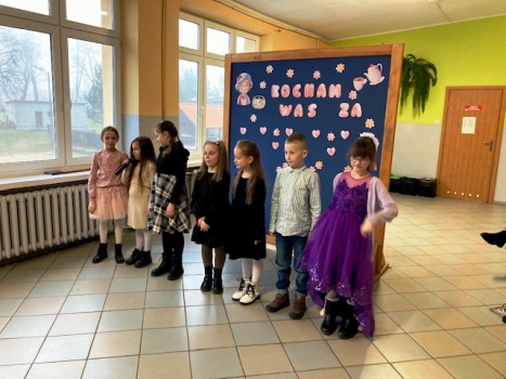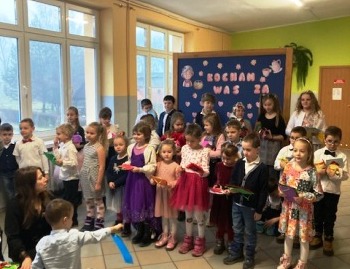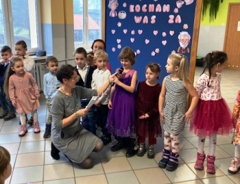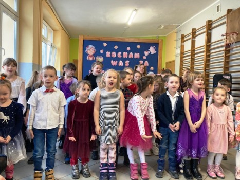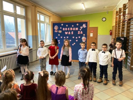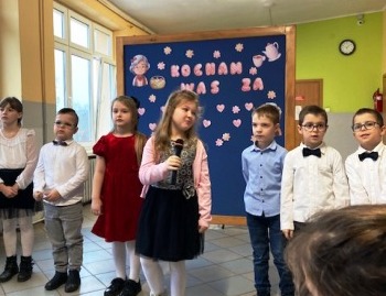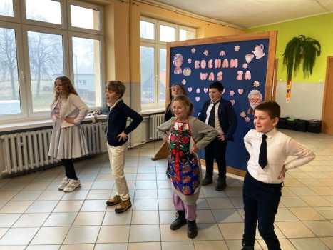 Następnie każda klasa zaprezentowała swoje umiejętności. Były wierszyki trochę poważne, a trochę śmieszne. Nie zabrakło wzruszającej piosenki w wykonaniu klasy 2. Natomiast klasa 3, oprócz ciekawego przedstawienia, pokazała swój talent taneczny. Na koniec wszystkie dzieci zaśpiewały piosenkę „Kiedy babcia była mała”.