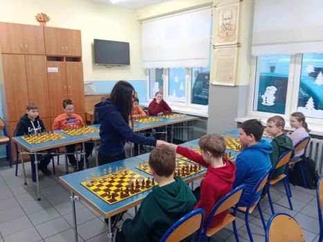 Pierwsze w 2025 roku, a kolejne w roku szkolnym spotkanie uczniów kółka szachowego z Panem Kamilem Zapałowskim, Prezesem Warmińsko-Mazurskiego Związku Szachowego odbyło się 23 stycznia 2025 roku. W spotkaniu wzięła udział córka Pana Kamila, Wiktoria, która jest zaawansowaną zawodniczką uczestniczącą w turniejach szachowych na poziomie wojewódzkim, ogólnopolskim i europejskim.