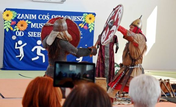 Stało się!!! Mamy swoją, piękną, jeszcze pachnącą świeżością salę gimnastyczną. Uroczyste otwarcie odbyło się 28.03.2025 r. Zaproszeni goście mogli miło spędzić czas podziwiając występy naszych uzdolnionych uczniów. Byly tańce, śpiewanie, sport. Jedną z głównych atrakcji był występ gości z Agencji Widowisk Historycznych "Arkona" z Torunia.