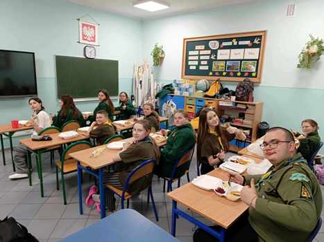 W dniu dzisiejszym (05.04.) zakończyła się dwudniowa impreza harcerska Związku Drużyn Ostróda, czyli Rajd Wiosenny „Szczepankowo 2025”, który organizowała nasza drużyna, razem z noclegiem w naszej szkole, dzięki uprzejmości Pani Dyrektor Grażyny Napiórkowskiej - dziękujemy! Rajd rozpoczęliśmy od apelu mundurowego uczestników: