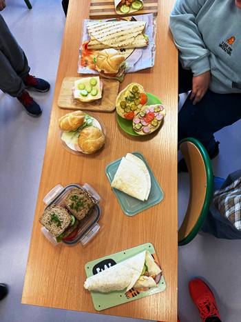 27 maja, podczas lekcji techniki, uczennice i uczniowie klasy piątej zabrali się za przygotowanie pysznych, kolorowych i pełnych witamin tortilli i kanapek. Z własnych produktów mieli za zadanie w ciągu 20 minut wykazać się pomysłowością, wiedzą jak i umiejętnościami w przygotowaniu posiłku. I to się udało, nawet i ja przygotowałem sobie posiłek. Po prezentacji swoich dzieł wszyscy zabrali się za pałaszowanie (spożycie) swoich cudnych tortilli/kanapek.