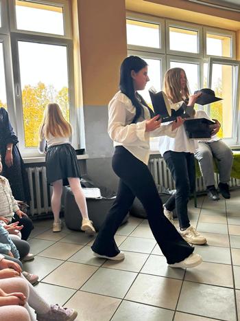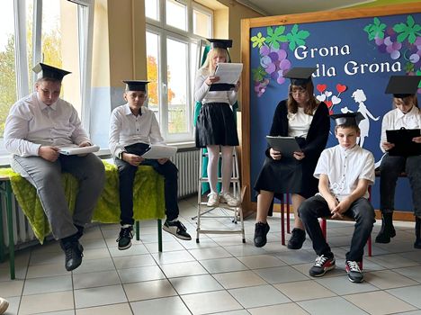 15-ego października w naszej szkole obchodziliśmy święto Edukacji Narodowej. Uczniowie klasy VII - według napisanego przez siebie scenariusza - przygotowali apel podczsa którego docenili trud pracy nauczyciela. Według nich dobry nauczyciel pamięta o tym, że kiedyś też był uczniem, dlatego teraz rozumie lęki i smutki swoich wychowanków. Podziękowaniom nie było końca.