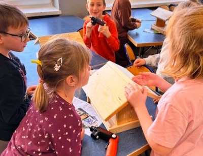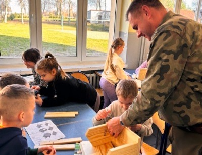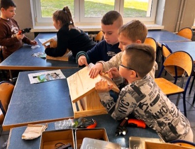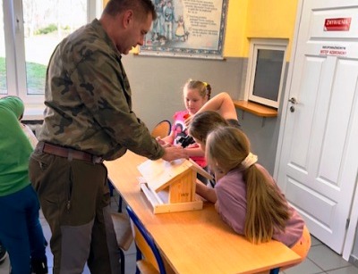 Dziś naszą szkołę odwiedził pracownik Zespołu Parków Krajobrazowych Pojezierza Iławskiego i Wzgórz Dylewskich pan Grzegorz Głozek. Opowiedział uczniom, jak dbać o ptaki zimą, co wsypywać do karmnika, a czego się wystrzegać. Po części teoretycznej, uczniowie, z niewielką pomocą w grupach, tworzyli własne karmniki. Dzieci były zachwycone możliwością samodzielnej pracy i korzystania z wkrętarki*. Wspaniałe karmniki zawisną na drzewach wokół szkoły i pobliskich wsiach.