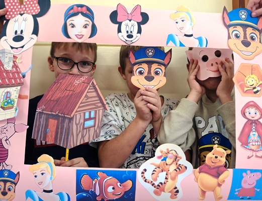 Chętni uczniowie czytali bajki młodszym kolegom, co sprzyjało integracji, budowaniu więzi oraz zachęcało najmłodszych do częstszego kontaktu z książką. Nie zabrakło również bajkowych zagadek i kolorowanek. Dodatkową atrakcją była fotobudka, która cieszyła się dużym zainteresowaniem. Na zakończenie tygodnia uczniowie z kl. IV zaprezentowali dzieciom z oddziałów przedszkolnych teatrzyk pt. „Trzy Małe Świnki”. W ramach obchodów zorganizowany został też konkurs plastyczny „Moja ulubiona postać z bajki”, podczas którego uczniowie wykonywali prace przedstawiające swoich ulubionych bohaterów.