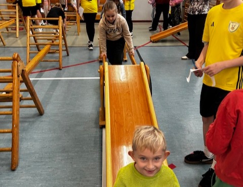 Dziś uczniowie klas I-III uczestniczyli w projekcie „Mały Mistrz” realizowanym przez SP w Stębarku. Nasi najmłodsi mogli sprawdzić swoją wiedzę i umiejętności podczas zajęć z pierwszej pomocy; przejść wspaniały tor przeszkód składający się z wielu ciekawych, a czasem dość wymagających części. Na koniec zmęczyć się na dmuchańcach. Nie zabrakło również pysznego obiadu.